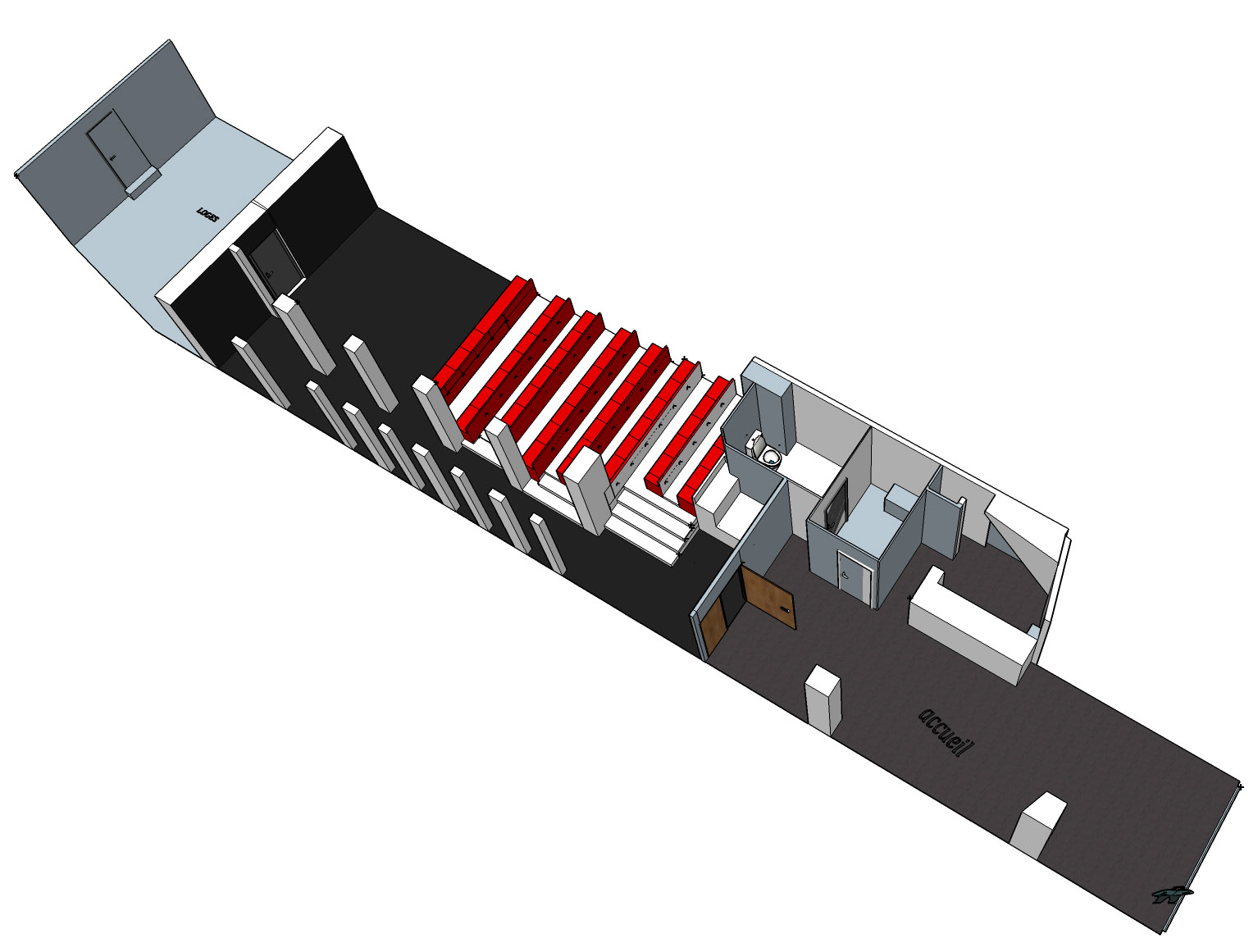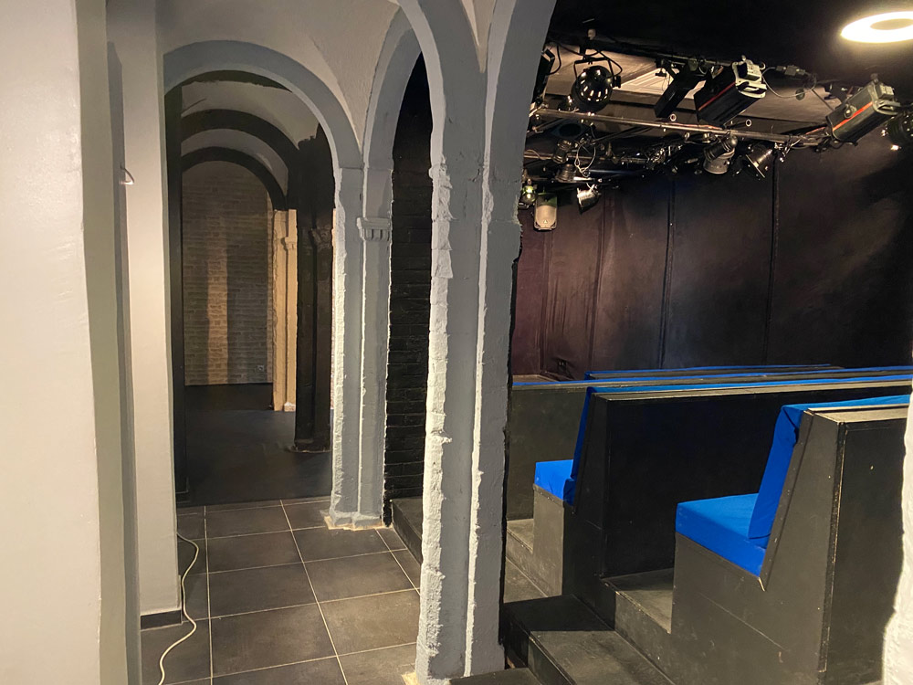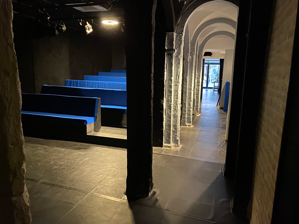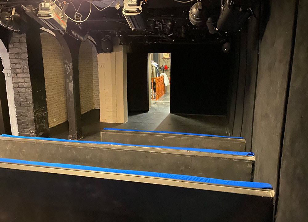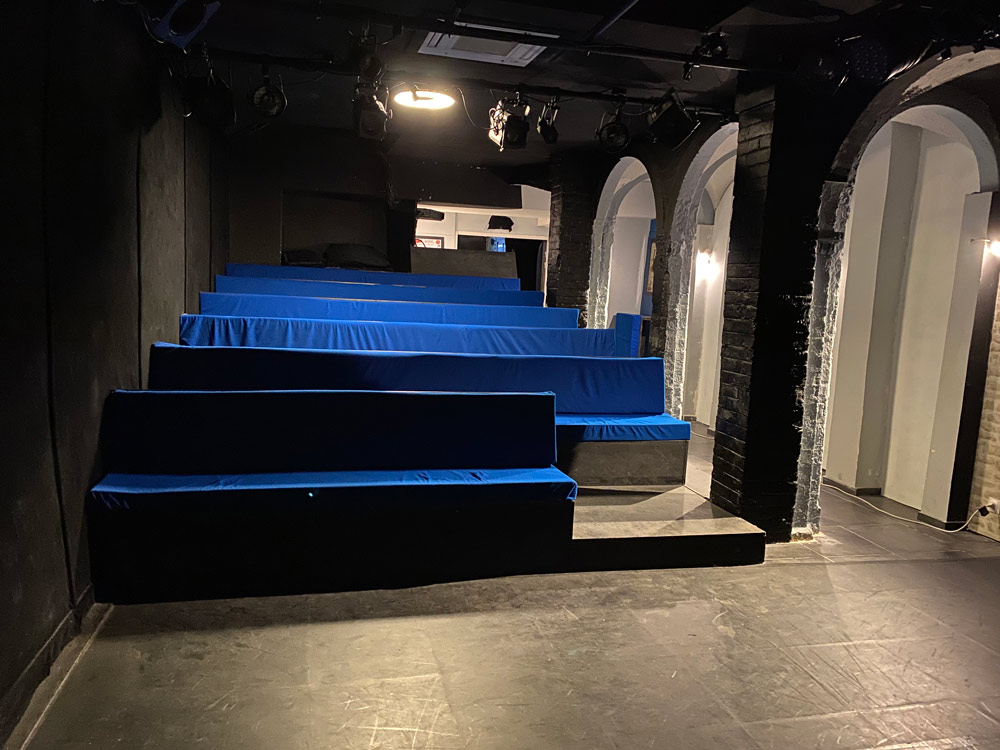 Le plateau est recouvert d’un tapis de danse noir.